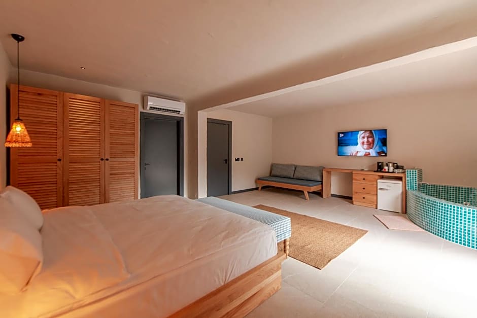 This double room's special feature is the hot tub. Providing free toiletries and bathrobes, this double room includes a private bathroom with a shower, a hairdryer and slippers. The spacious air-conditioned double room provides a flat-screen TV with cable channels, soundproof walls, a tea and coffee maker, a seating area as well as garden views. The unit offers 2 beds.